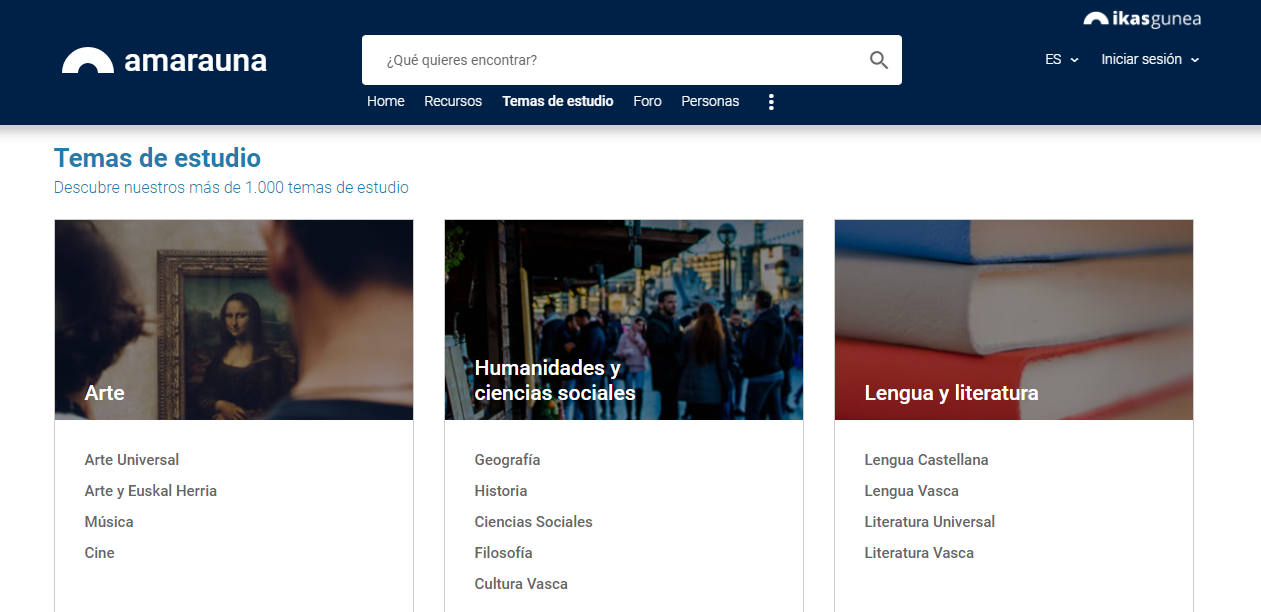 Los temas de estudio están en euskera y castellano y la plataforma se puede configurar en 8 idiomas. Los recursos se pueden filtrar también por idioma.